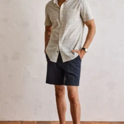 The Easy Short In Heather Navy Seersucker