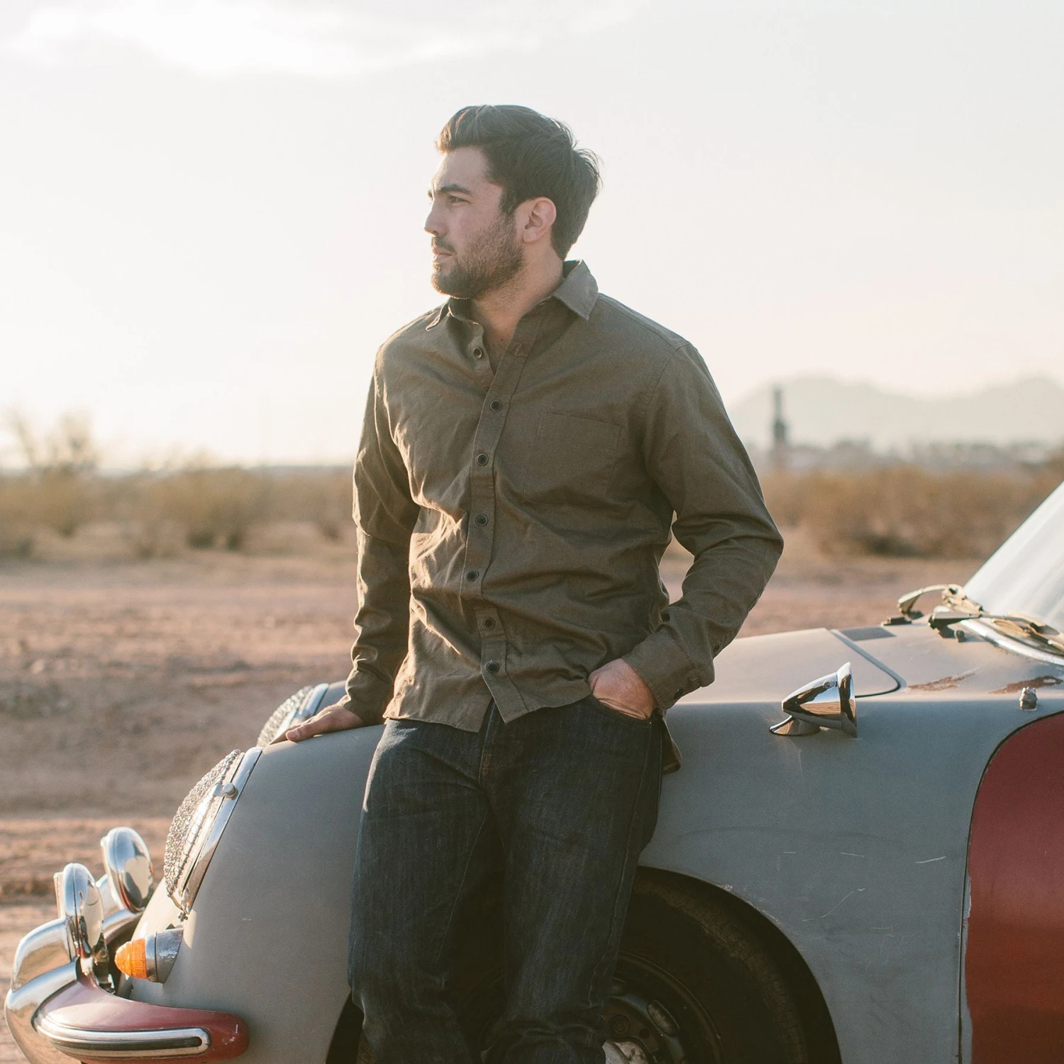 A clean-fronted, big-buttoned, hard-wearing shirt for when gas and grease beckon. Shop in Moss.