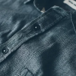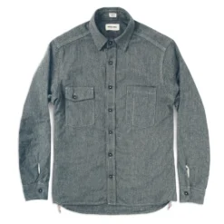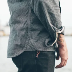 Constructed from salt & pepper cotton chambray, it’s got the bones of your grandfather’s burly work shirt, but with a modern tailored finish. Limited Quantities.