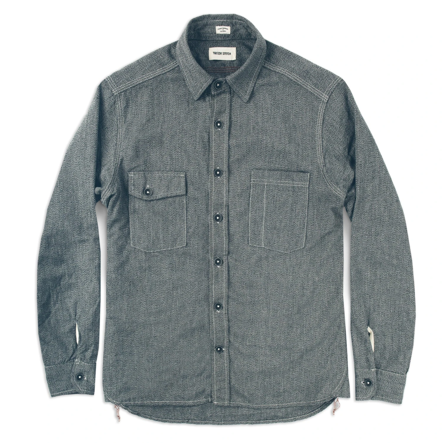 - 7-oz. cotton chambray in salt & pepper.