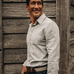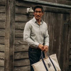 The California in Midnight Slub Micro Stripe from Taylor Stitch