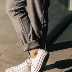 The Camp Pant in Charcoal Reverse Sateen by Taylor Stitch