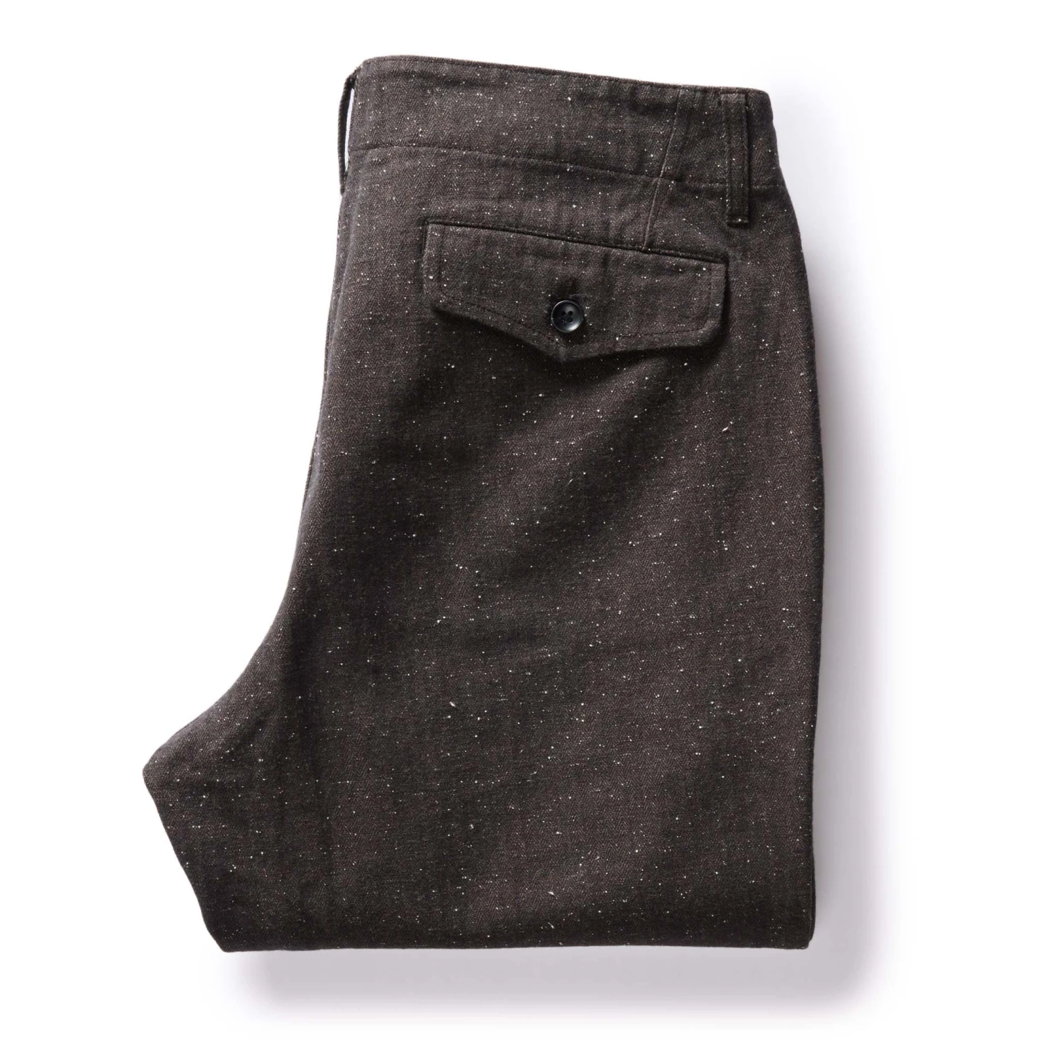 - Two back welt pockets with button-through flaps.