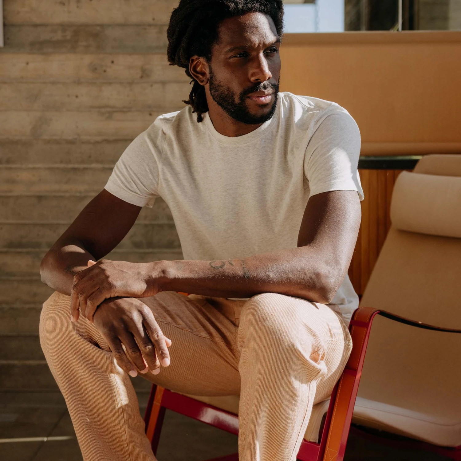 The Cotton Hemp Tee in Heathered Oat from Taylor Stitch