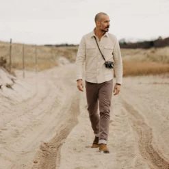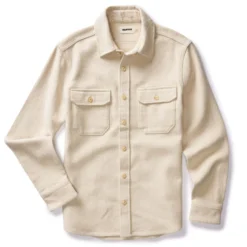 - Two mitered chest pockets with button through flaps. Left pocket features a pen sleeve.