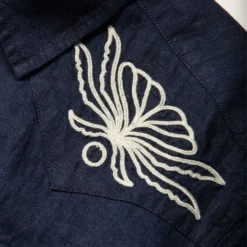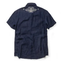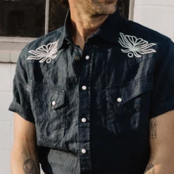 The Embroidered Short Sleeve Western in Indigo Linen from Taylor Stitch