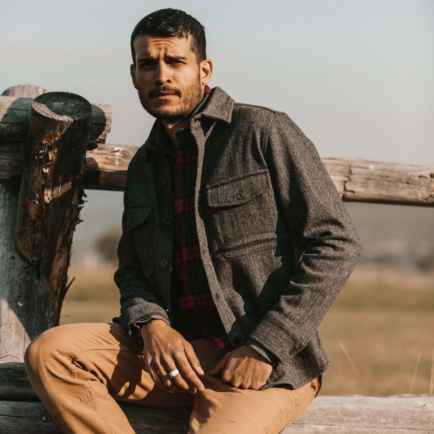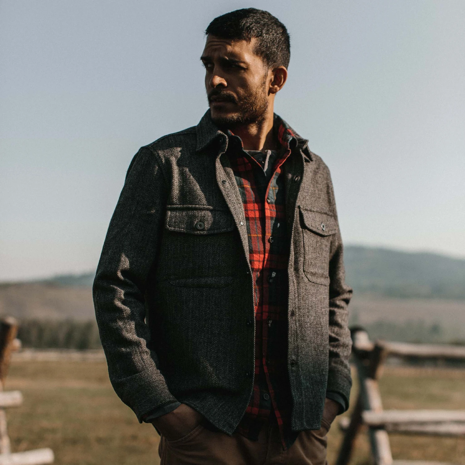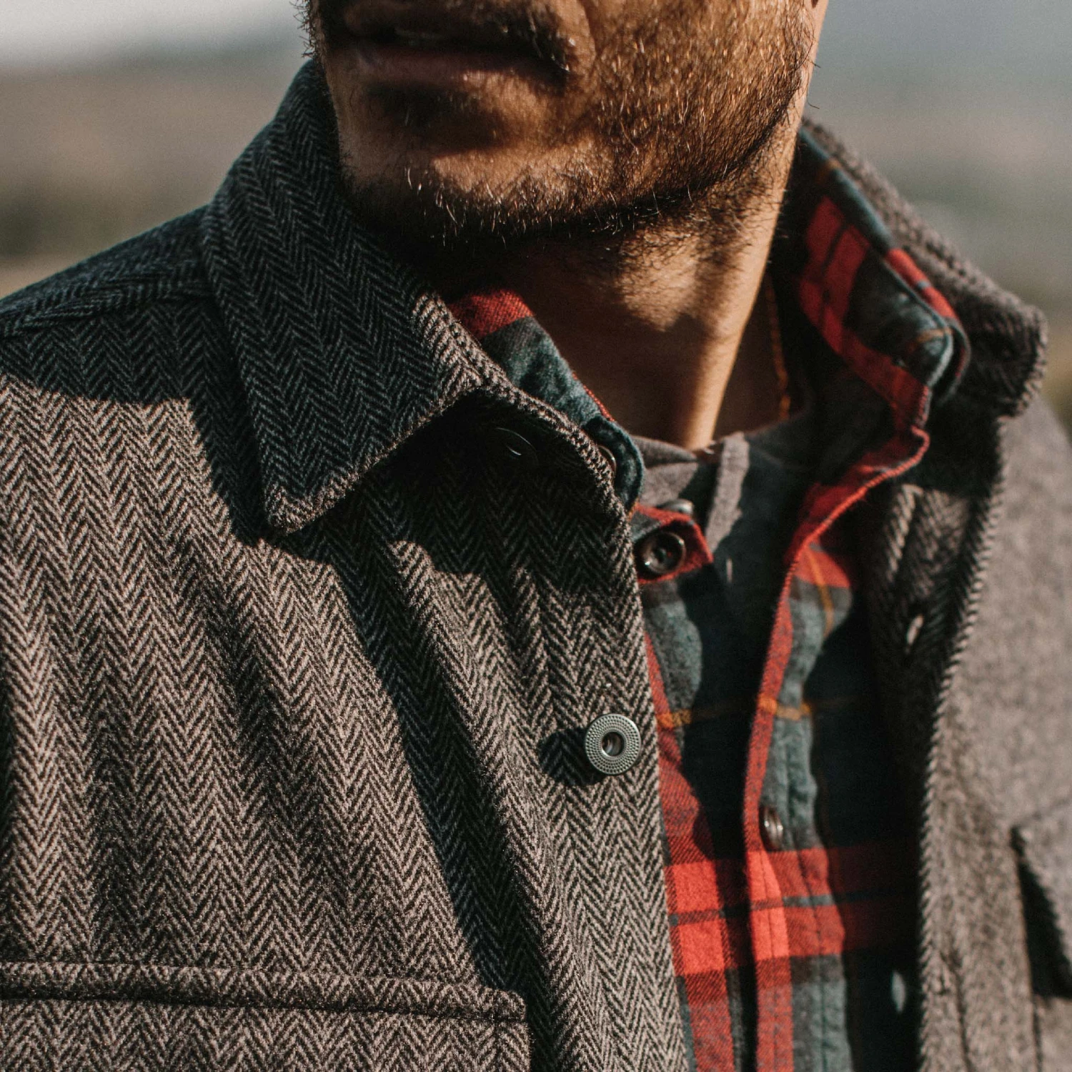 The Explorer Shirt in Coal Herringbone Wool from Taylor Stitch