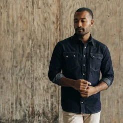 The Frontier Shirt in Rinsed Indigo Denim from Taylor Stitch