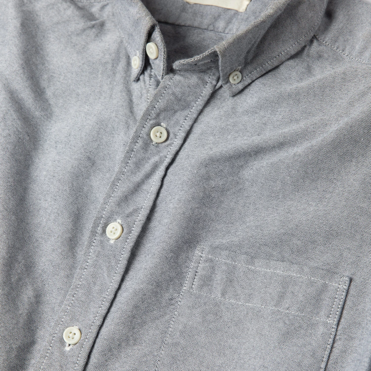 Our staple shirt has a tailored fit with a triple button collar. 7 years in the marking, this classic charcoal oxford is never understated. Shop Essentials.
