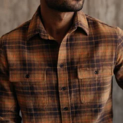 The Ledge Shirt in Tarnished Brass Plaid from Taylor Stitch