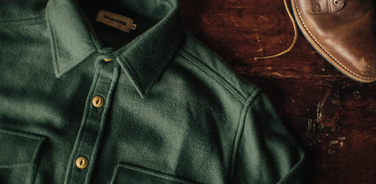 The Maritime Shirt Jacket in Olive by Taylor Stitch.