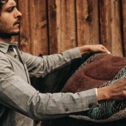 The Mechanic Shirt in Slate Herringbone from Taylor Stitch