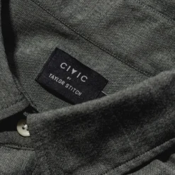 - 6.5-oz. 70% Merino, 30% Sorona®, custom developed for CIVIC and Taylor Stitch.