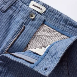 The Morse Pant in Bleached Indigo Herringbone from Taylor Stitch
