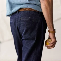 The Morse Pant in Rinsed Indigo Stripe from Taylor Stitch