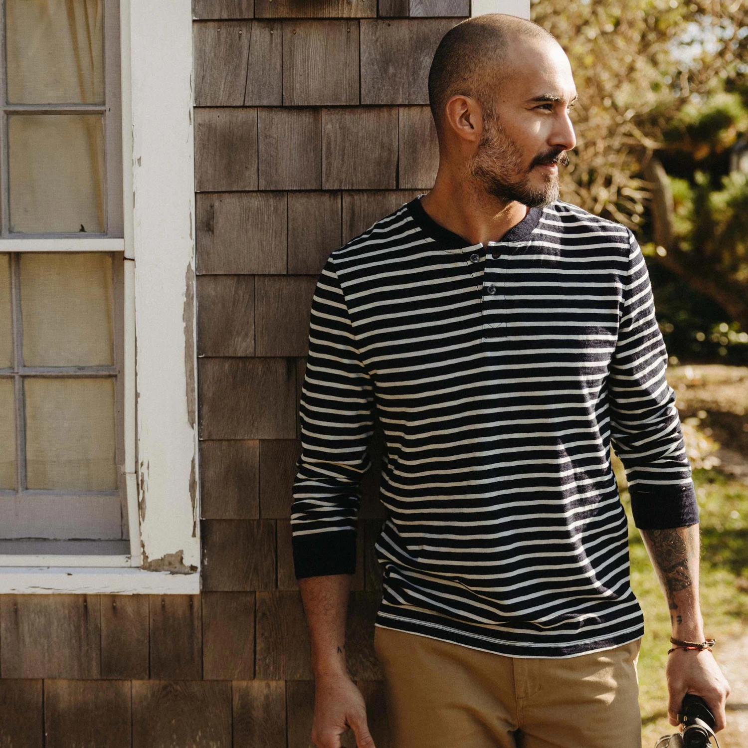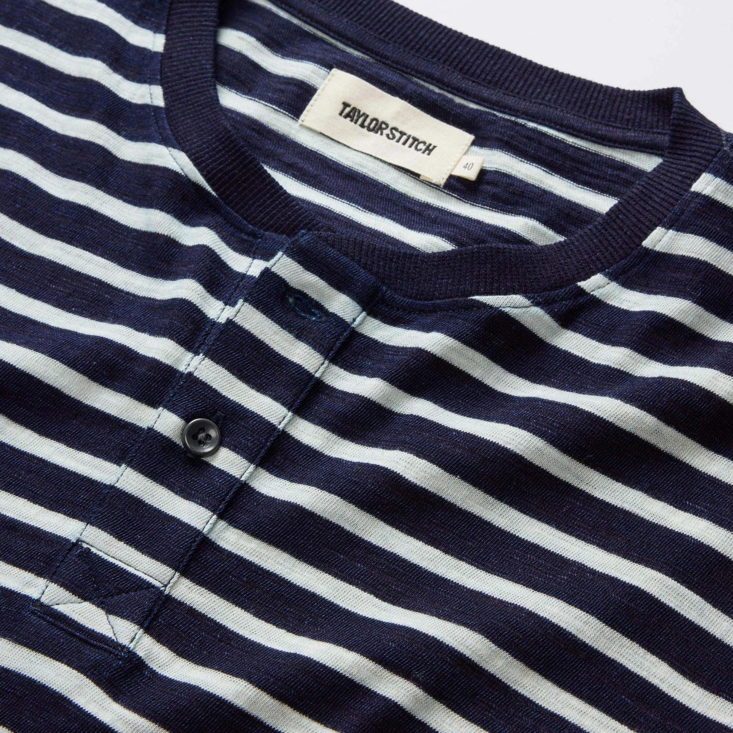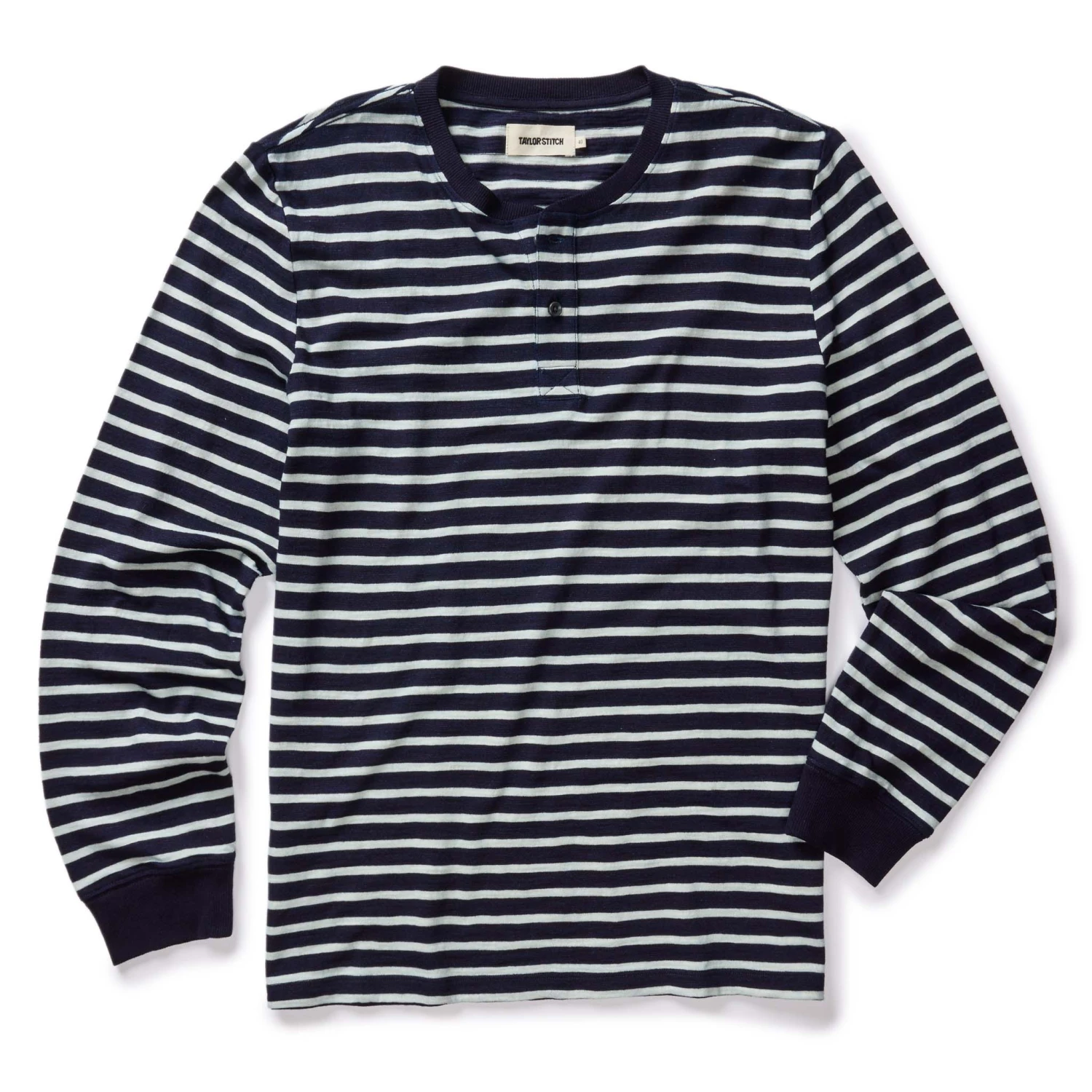 The Organic Cotton Henley In Rinsed Indigo Stripe