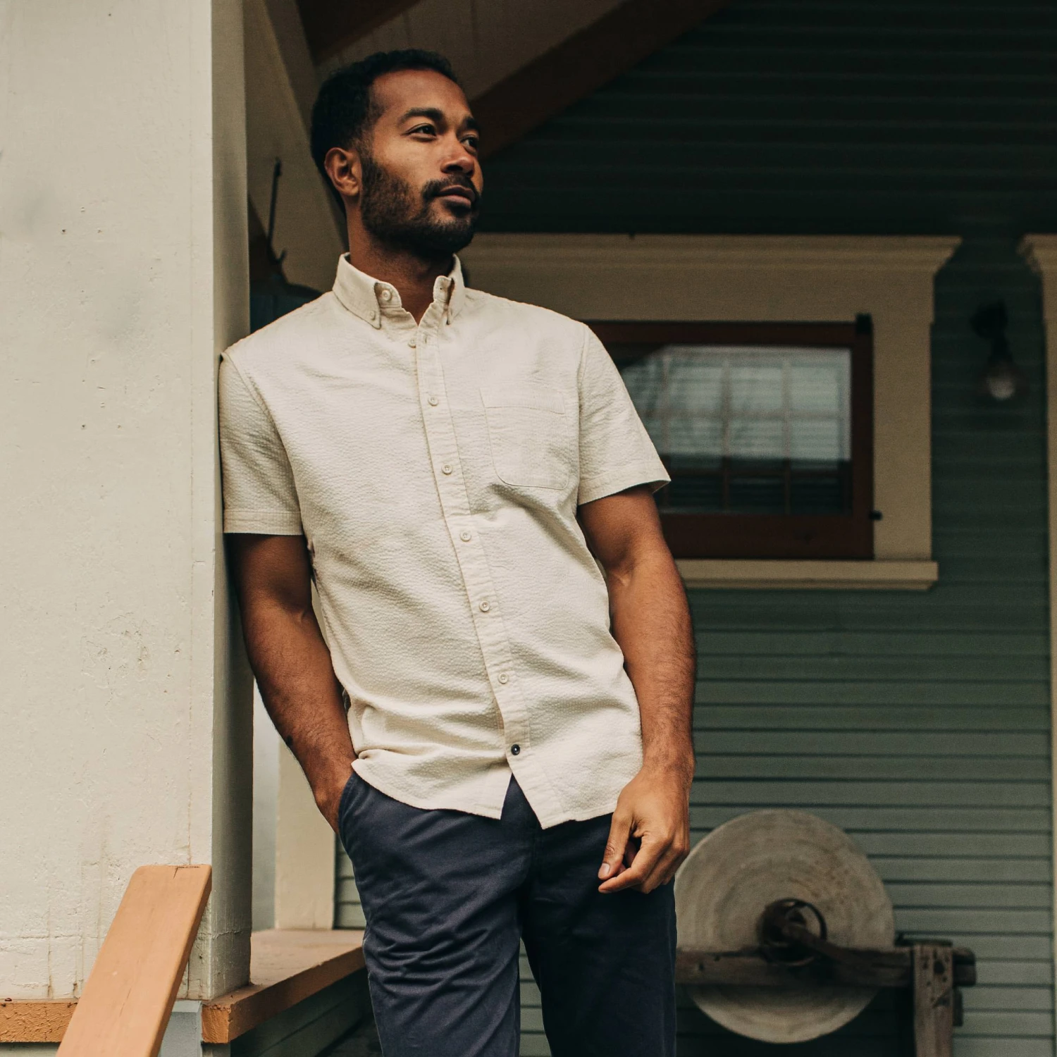 The Short Sleeve Jack in Natural Seersucker from Taylor Stitch