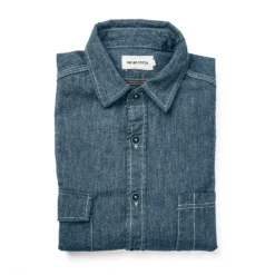 Constructed from salt & pepper cotton chambray, it’s got the bones of your grandfather’s burly work shirt, but with a modern tailored finish. Limited in Indigo.