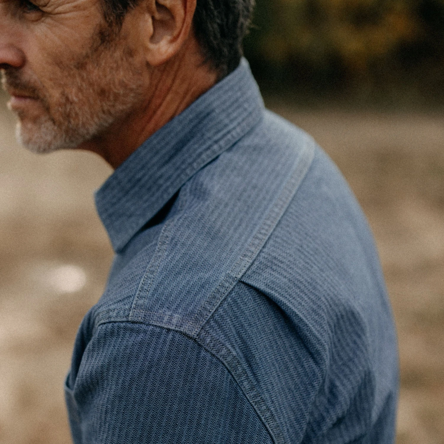 The Utility Shirt in Washed Indigo Herringbone from Taylor Stitch