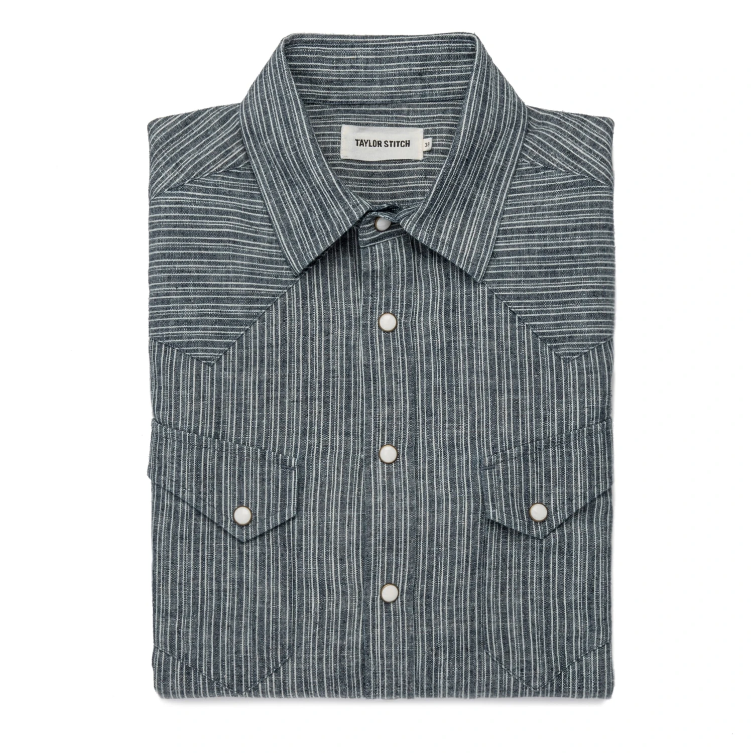 The Western Shirt in Hemp Stripe Chambray from Taylor Stitch.